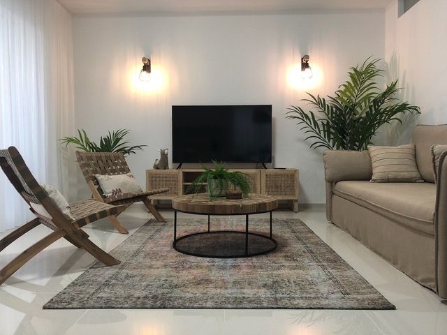 This boho style apartment is furnished with elegance and offers all amenities to have a pleasant and carefree holiday. 2 bedrooms, 2 bathrooms, fully equipped kitchen, airconditioning and indoor parking space. The 2 sunny terraces - one of them with poolview - are the perfect place to loosen up. Sit down and relax, all you need is the Spanish sun!