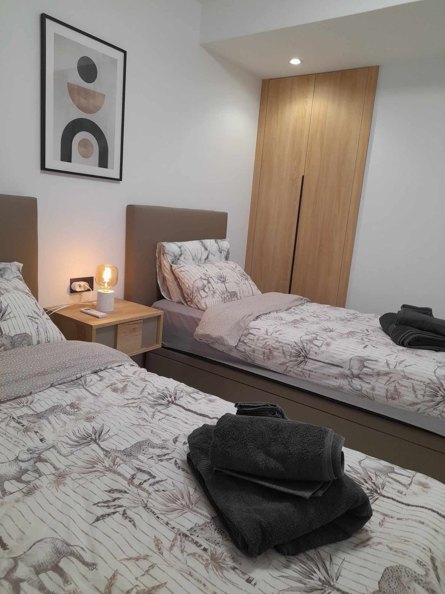 The apartment has 2 bedrooms, 2 bathrooms with walk-in shower and toilet, sofa bed, veranda with glass curtain, fully equipped kitchen with various appliances, dishwasher, washing machine, 3 air conditioners, 2 bathroom heaters, terrace and garden with artificial grass, BBQ, upstairs and underground parking, 2 bicycles with helmets, bicycle trailer, smart TV with Chromecast and Netflix, WIFI, board games, 2 portable beach chairs and beach tent, towels and bath linen available…